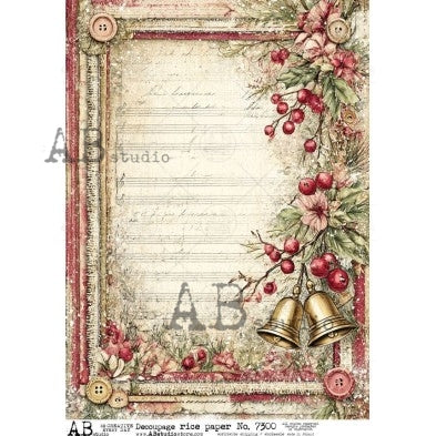 Floral Christmas Frame #7300 | A4 Rice Paper