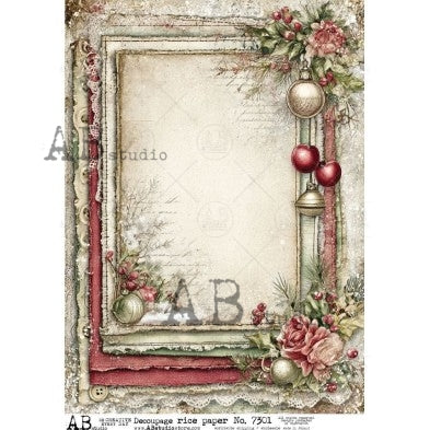 Floral Christmas Frame #7301 | A4 Rice Paper