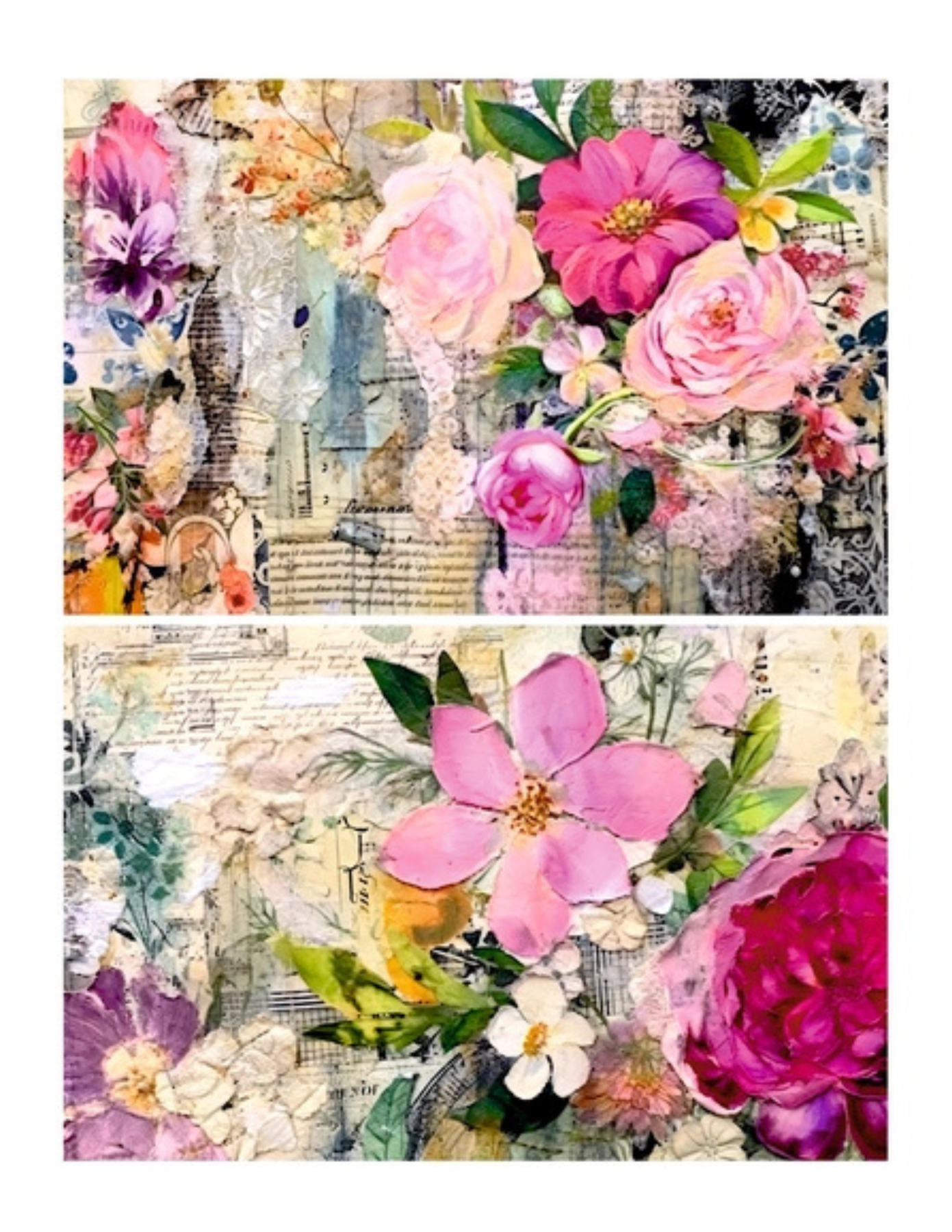 The colors will really pop when applied over white or light backgrounds. The color will also become more vibrant once sealed with your decoupage medium