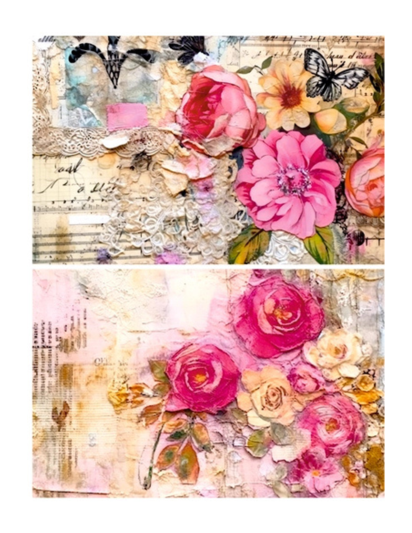 The colors will really pop when applied over white or light backgrounds. The color will also become more vibrant once sealed with your decoupage medium