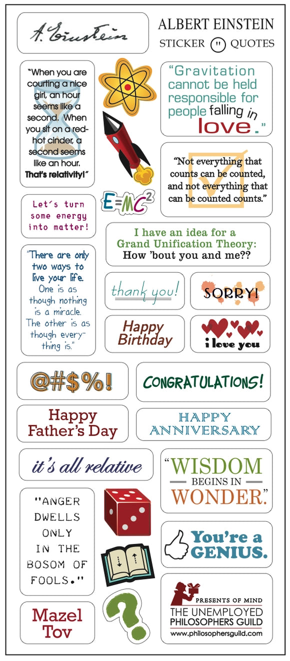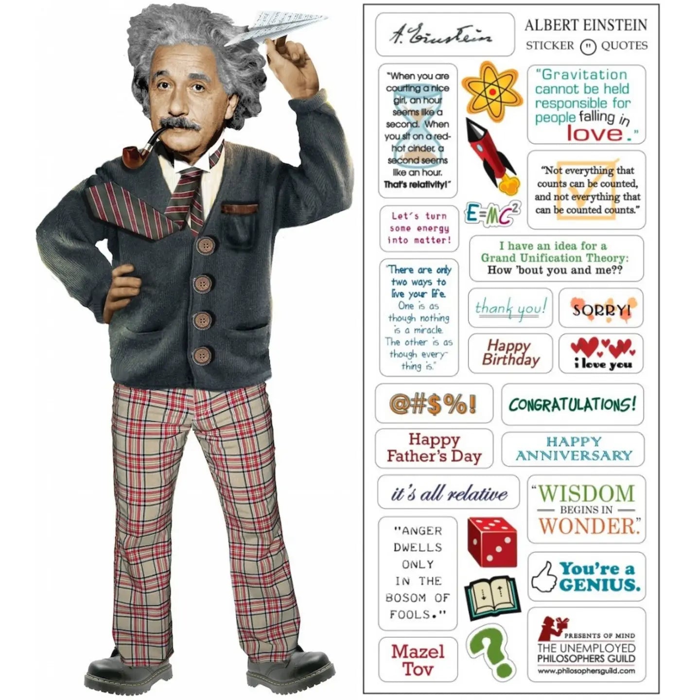 Send your own groundbreaking equations to a friend with our die-cut Albert Einstein card. Quotable Notable die-cut greeting cards feature the portrait of a famous figure on the front and a mini biography on the back.