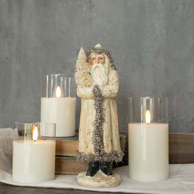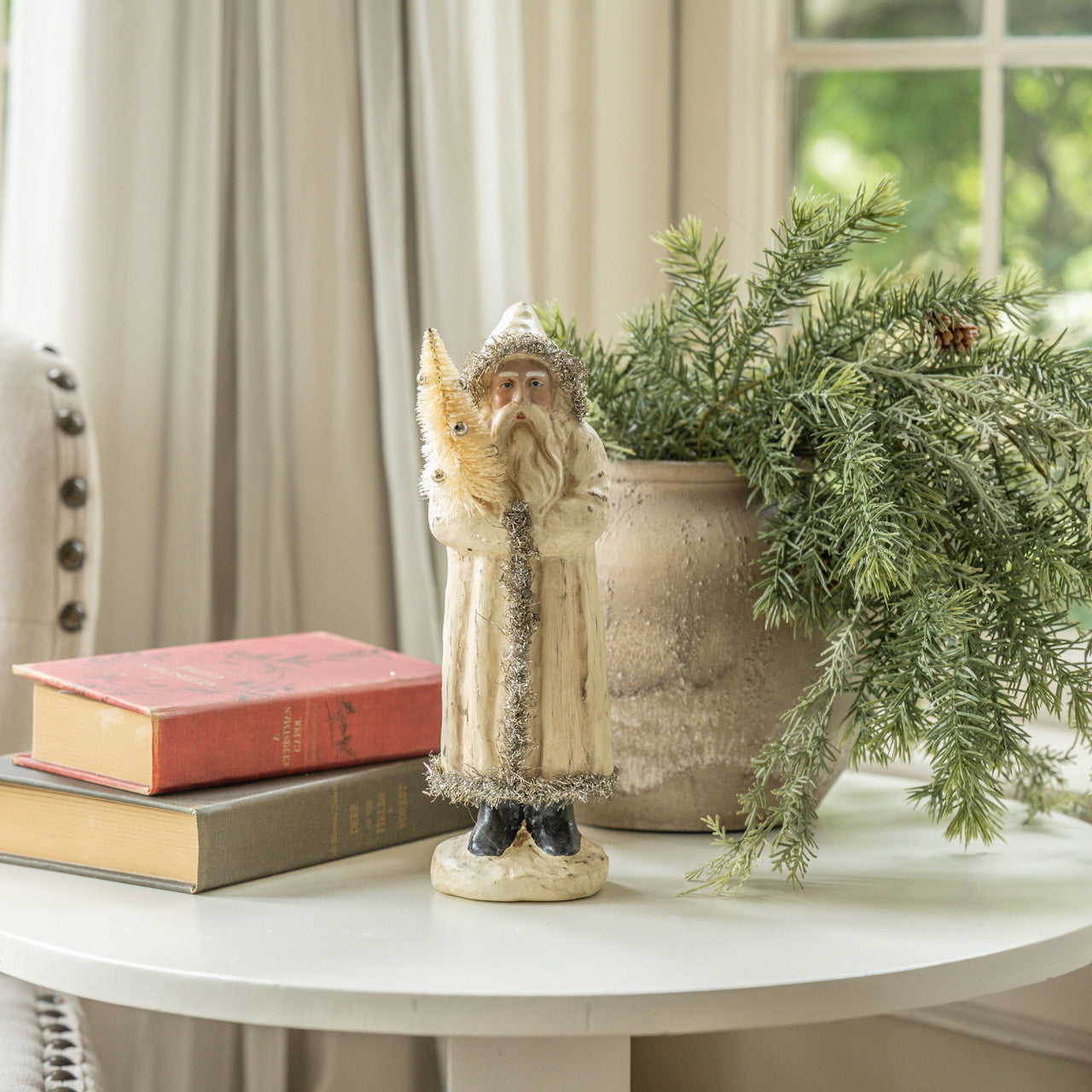 Experience the rustic charm of the holiday season with the Vintage White Belsnickle Figurine by Ragon House! Standing 10" tall, he is sure to be a festive addition to any home. Take a step back in time and bring the old-fashioned appeal of this paper mache Santa Claus into your home.