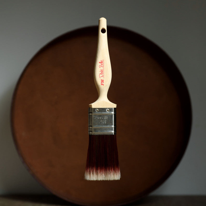 Our synthetic brushes are made specifically for long-lasting use. Our brushes are a specially formulated mixture of Nylon and Polyester tapered filament in different lengths and diameter ratios. This mixture was developed to provide the right amount of stiffness while also providing enough flex with bend recovery. The amount of tapered filament used in the mixture allows for a smooth release of the paint application onto a surface evenly. Our synthetic brushes are able to keep their shape without becoming deformed when used in Dixie Belle water-based paints as their stiffness changes very little. We developed these brushes to be dense having a lot more filament in them than you typically would with these size brushes