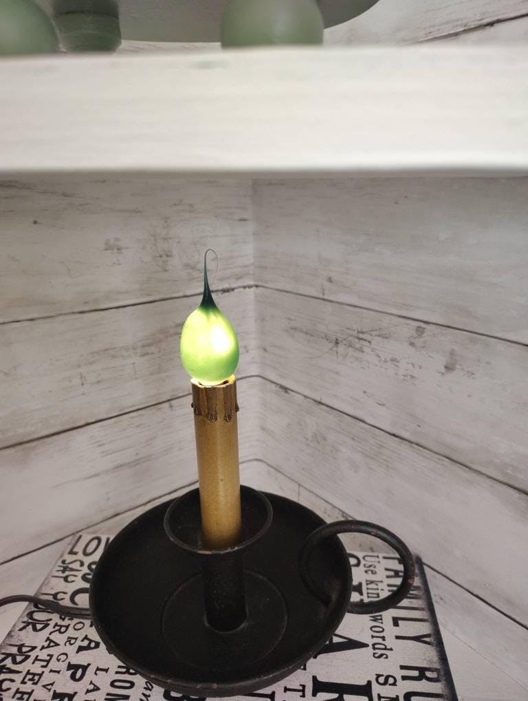 • This 4-watt candelabra light bulb has been hand-dipped in translucent colored silicone