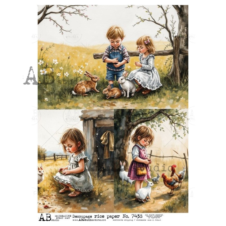 Farm Children #7438 | A4 Rice Paper