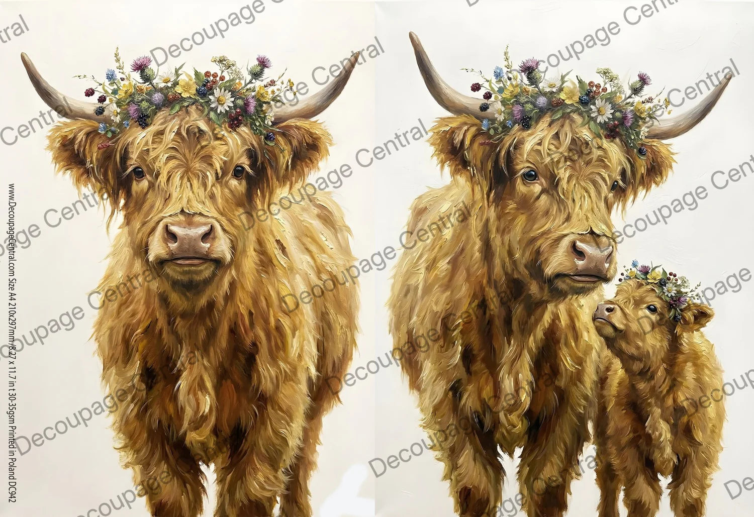 Floral Highland Cow #942 | A4 Rice Paper
