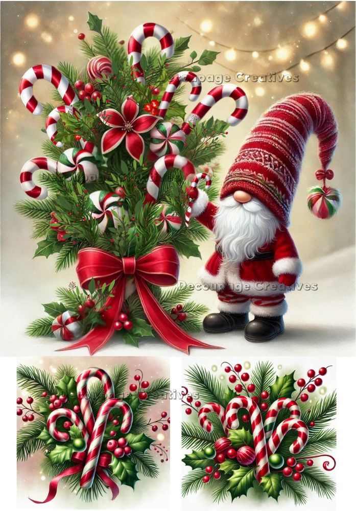 Candy Cane Gnome #849 | A4 Rice Paper