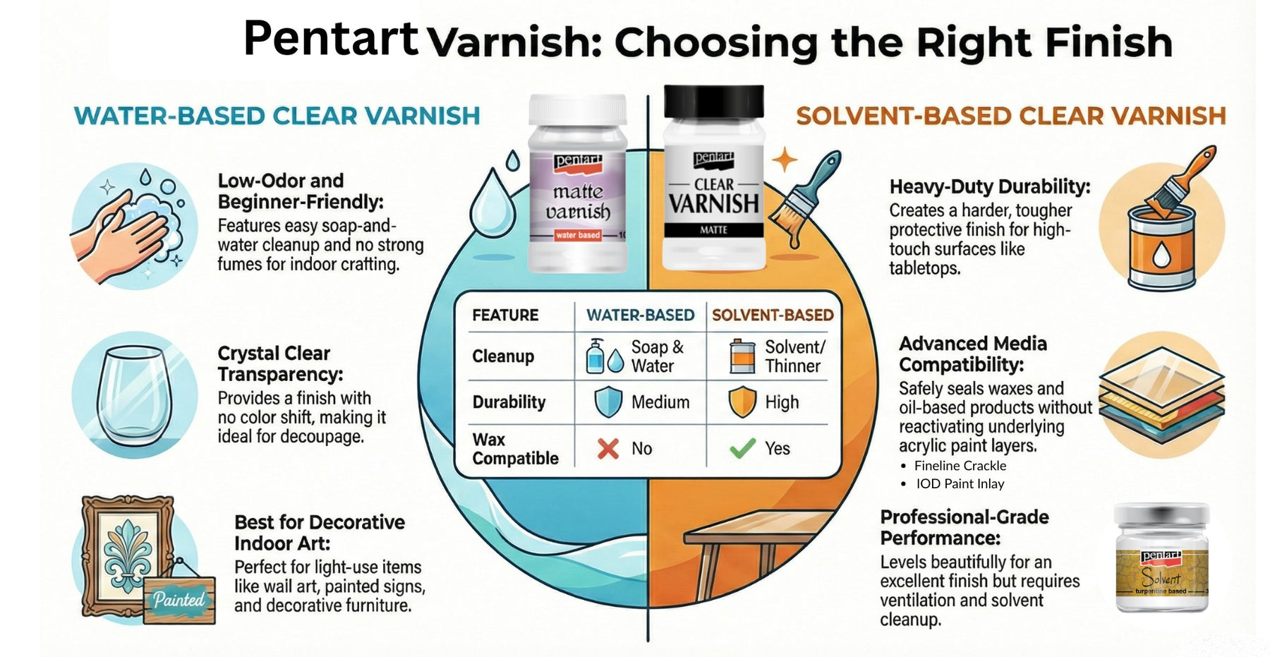 Give your projects a professional finish with Pentart's Solvent-Based Clear Varnish Sealer.