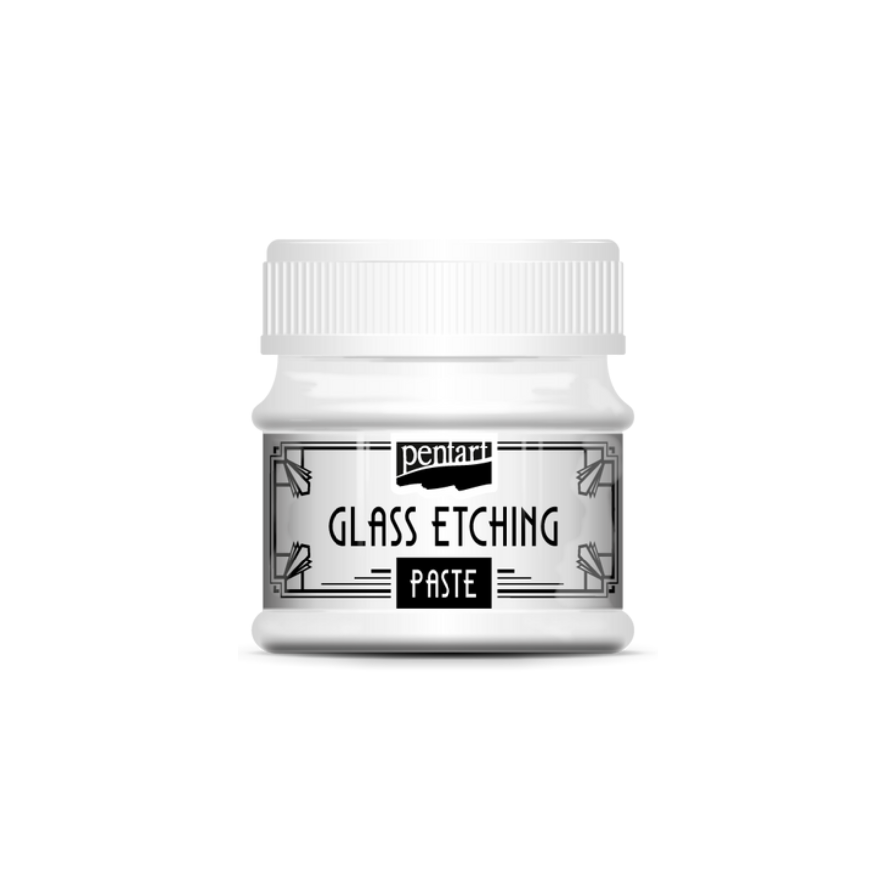 Solvent-based, creamy paste for etching glass surfaces. Stir the paste well, then apply it to the degreased glass surface with a brush, sponge brush or plastic palette knife. Let it react for 15 minutes, then rinse off with water. Can be applied in stencils.
