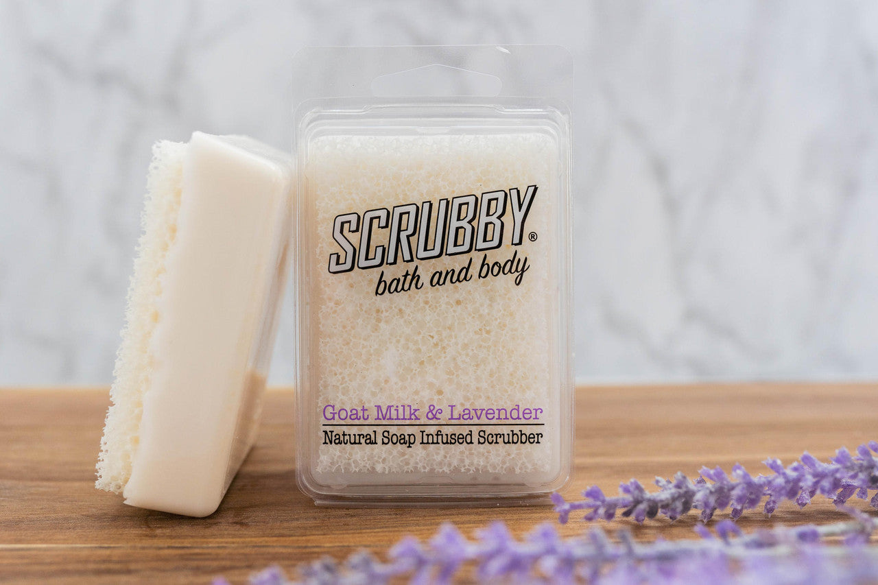 Relax with our Bath & Body Scrubby. With our goat milk soap, essential oil, and natural soap infused scrubber, you can enjoy an aromatic, relaxing, deep cleaning experience with spa like qualities.