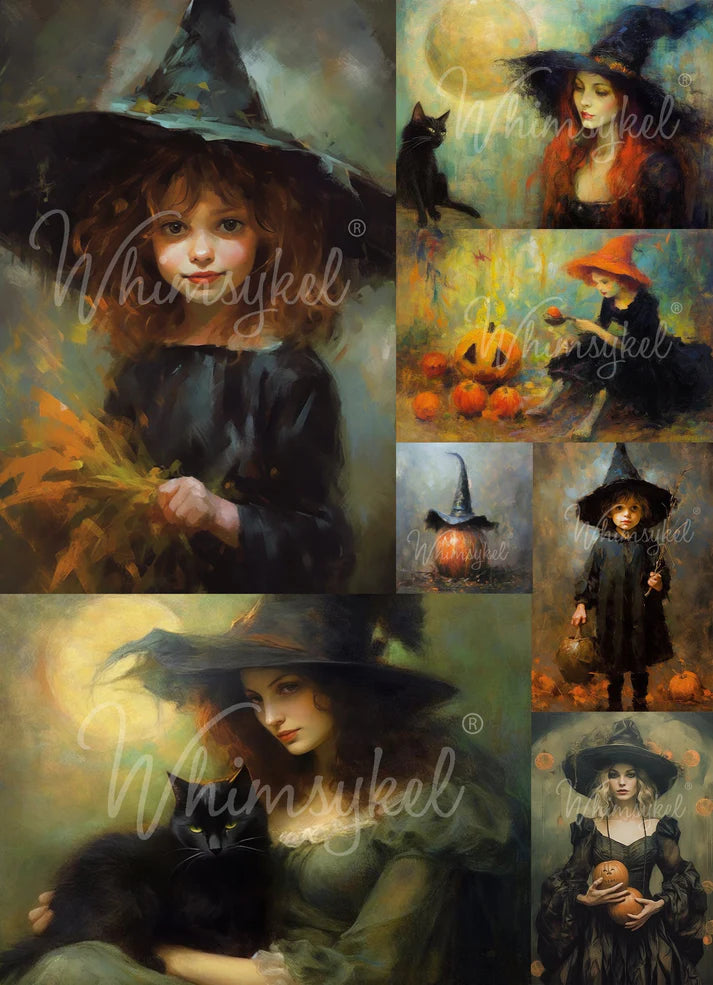 Behold our bewitching beauties "Charm & Chaos" - a spellbinding collage of seven little witches, pumpkins, and cats. Each witch possesses her own unique charm, adding a touch of whimsy and magic to any crafting project. Adorn your Halloween decorations and let these bewitching beauties inspire your next creative adventure. Let the magic of "Charm & Chaos" unfold.