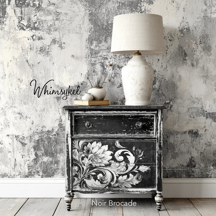 This bold black and white brocade design is a timeless classic. Keep it monochrome for a striking, sophisticated look — or paint the white flourishes in any color your heart desires for a custom creation that’s uniquely yours. Elegant, versatile, and effortlessly chic.