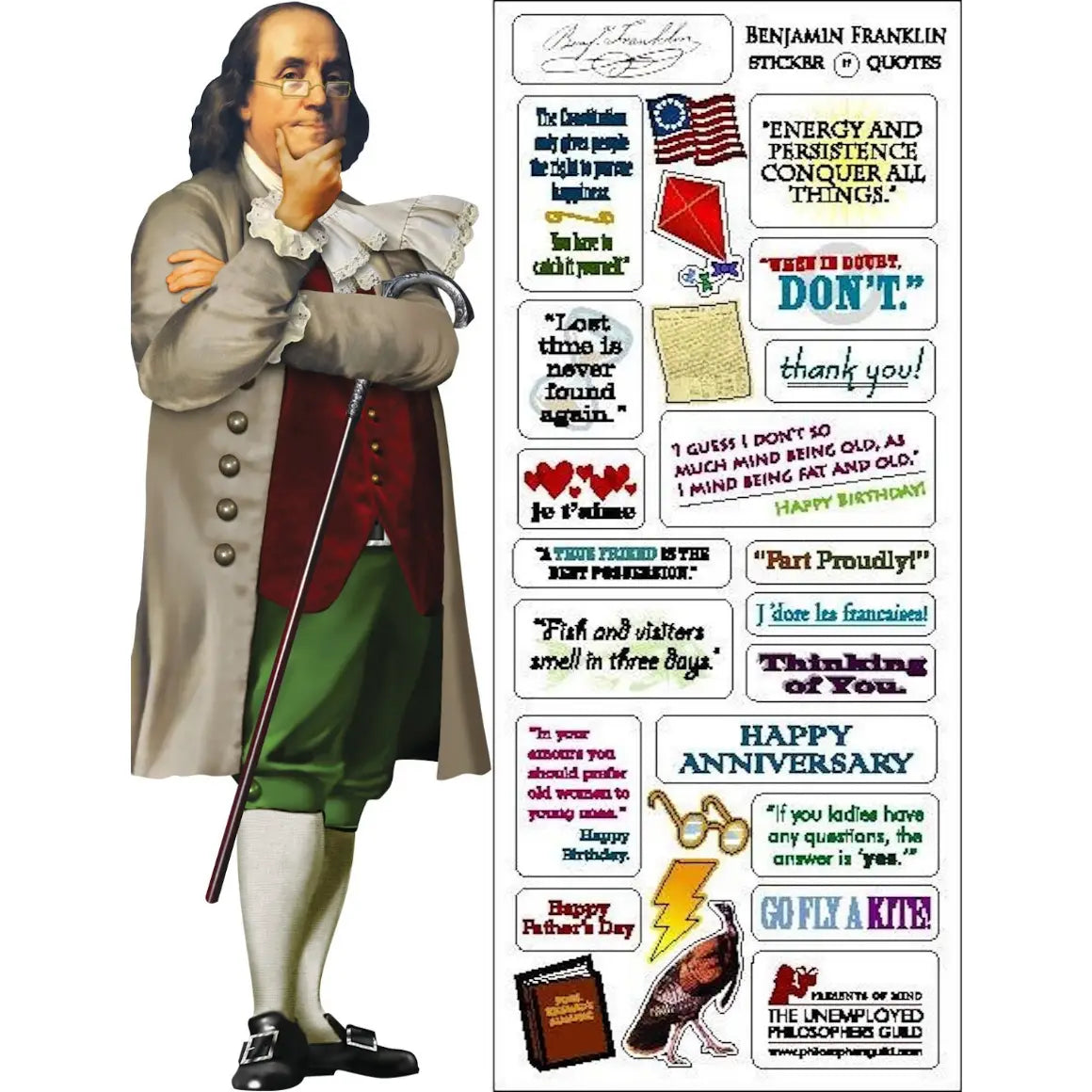 Our die-cut card of Benjamin Franklin is a revolution in stationery. Quotable Notable die-cut greeting cards feature the portrait of a famous figure on the front and a mini biography on the back.