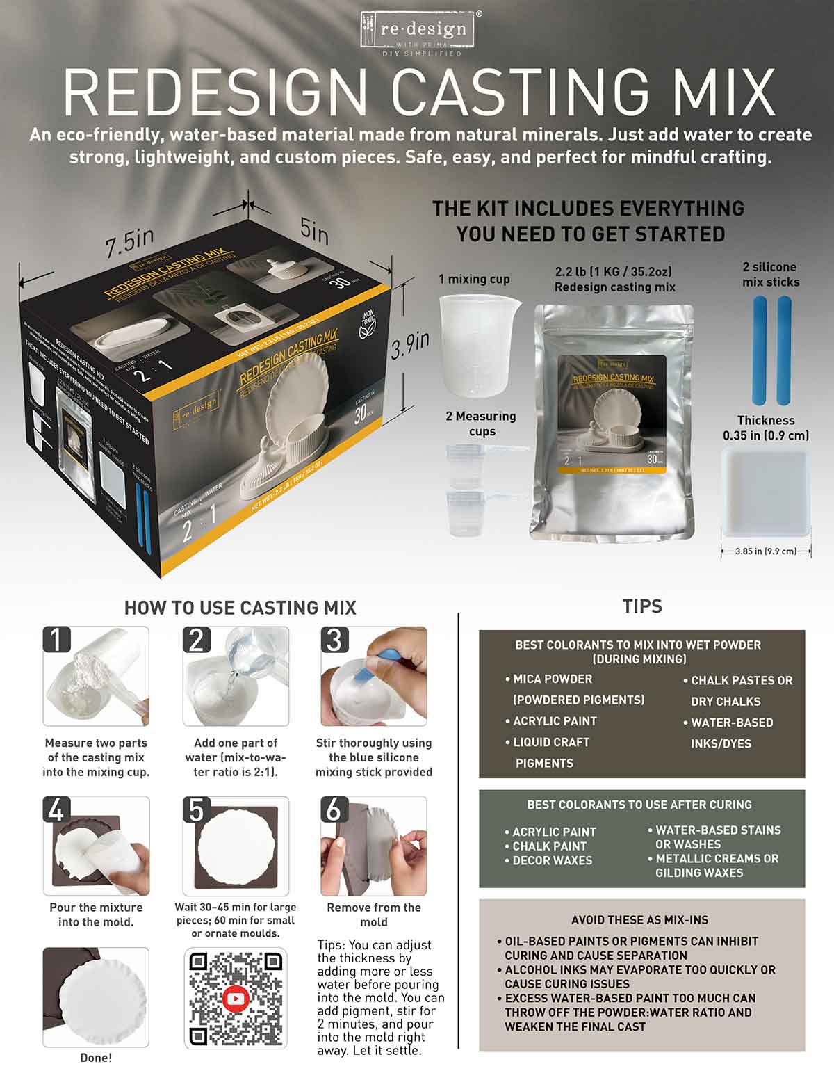 Discover endless DIY possibilities with the Redesign Casting Mix Kit! This complete starter set includes: