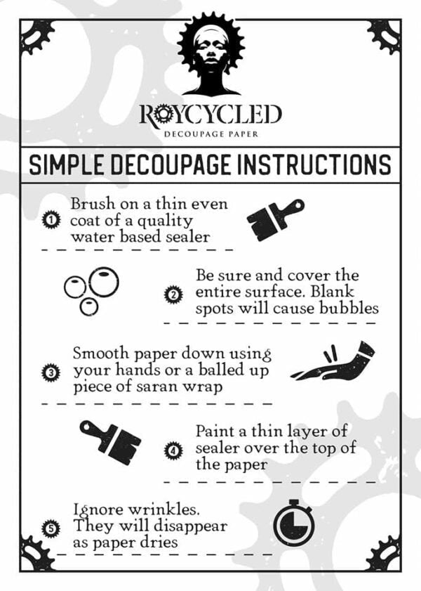 Roycycled Decoupage Paper is an easy way to add special touches to your craft projects. The 18lb decoupage tissue weight makes it both durable, and thin enough to virtually disappear.