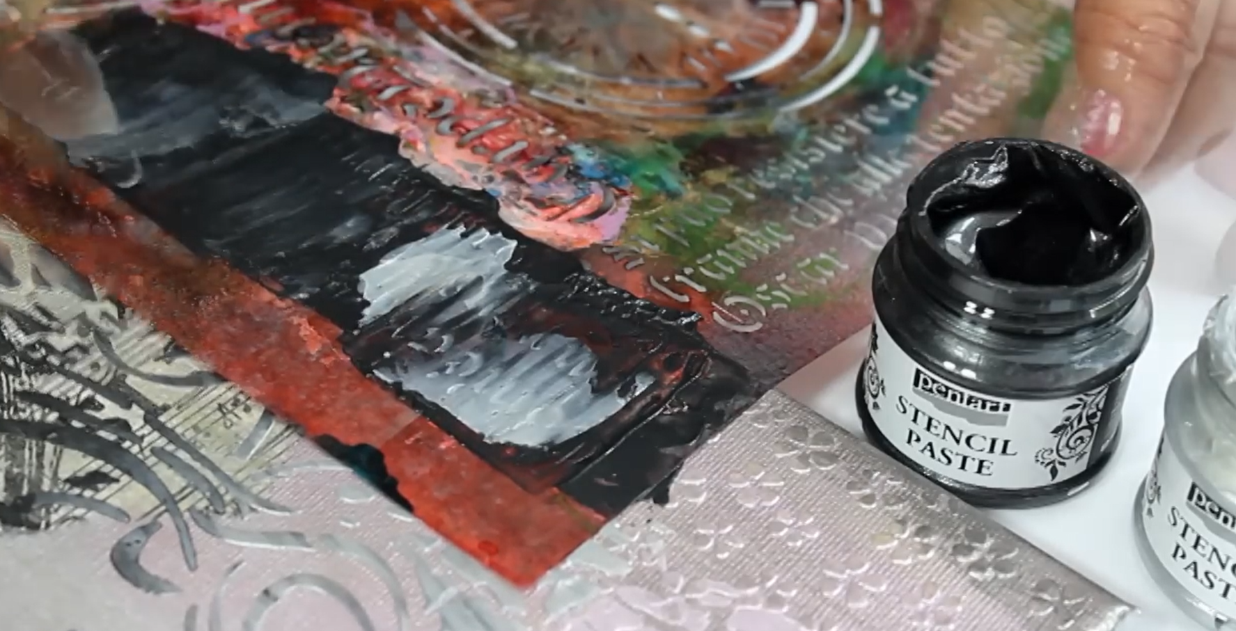 Water-based, very creamy and soft paste, especially developed for stencil work. Very easy to spread, can be used with thin and thick stencils.