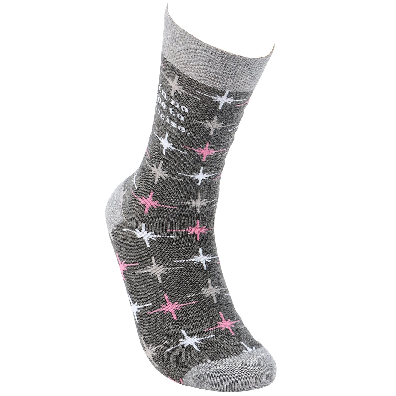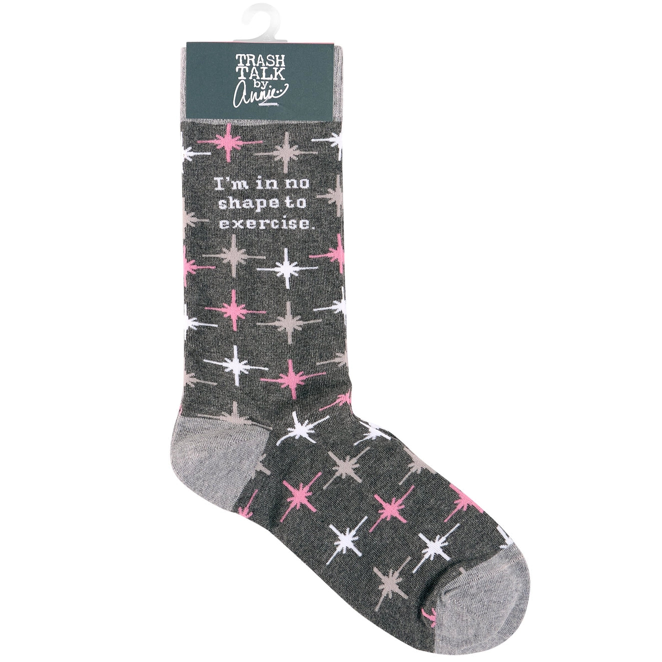 A pair of retro socks from our Trash Talk By Annie Collection flaunting a classy pink and gray pattern with a humorous sentiment. These cozy socks are made with cotton, nylon, and spandex to create a one-size-fits-most design.